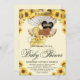 Chá de fraldas afro-sereia convidada com adorável sereia bebê africana com cabelo afro giro e casca de palma em um bonito girassol e fundo de ponto amarelo. Este belo convite para chá de fraldas de sereia é facilmente personalizado para o seu evento simplesmente adicionando os detalhes do seu evento.