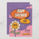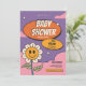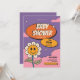Celebrar a chegada com este convite de chá de fraldas ranzinza! Apresentando um rosto alegre de girassol, uma divertida tipografia retrógrada e vibrações coloridas para o pastel, este design é perfeito para um chá de fraldas leve e na moda. Totalmente personalizável para nomes, data e informações de RSVP.