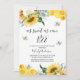 Convite para chás de fraldas de abelhas doçura, com alguns favos de mel, abelhas e algumas disposições florais de girassol e rosa branca. Esta é uma maneira adorável de convidar convidados para um chá de fraldas temido de abelhas.