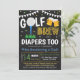 GOLFE, BREW E FRALDAS TAMBÉM! Golfe Adorável, Cerveja e Chá é excelente para jogar um chá pai divertido! Apresenta um fundo de quadro negro e gráficos bonitos! Um convite de excelente para usar ao hospedar uma festa casual de golfe divertida para os pais, pais ou mamães serem!