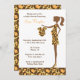 Uma mãe muito chique e moderna vestindo um vestido impresso de leopardo e segurando um lindo vestido de bebê.