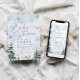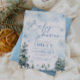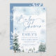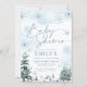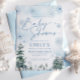 Chá de fraldas da Wonderland de inverno com flocos de neve azuis e pinheiros, e boho design.