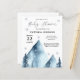 Capture a beleza serena do inverno com este convite encantador para chás de fraldas. Apresentando uma paisagem pitoresca de montanha adornada com flocos de neve delicados, este design irradia calor e charme para seu evento especial. A paleta de cores azul e branca suave evoca uma atmosfera víbora pacífica, enquanto fontes elegantes destacam os detalhes do evento. Perfeito para uma celebração de inverno aconchegante, este convite dá o tom para um chá de fraldas memorável cercado pela magia da estação.