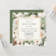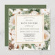 O Elegante convite para chás de fraldas de inverno apresenta um quadro de ouro rodeado por cor d'água verde-d'água, pinheiros e flores de inverno. Personalize com suas informações ou clique em "Clique para personalizar mais" para editar estilos de fonte, tamanho e cores.