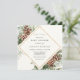 O Elegante convite para chás de fraldas de inverno apresenta um quadro de ouro rodeado por cor d'água verde-d'água, pinheiros e flores de inverno. Personalize com suas informações ou clique em "Clique para personalizar mais" para editar estilos de fonte, tamanho e cores.