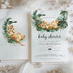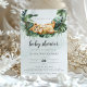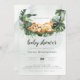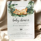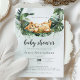 Um pequeno rei de leão em um balanço botânico. Este convite para chás de fraldas apresenta aquarelas desenhadas à mão e fontes modernas.