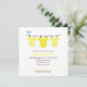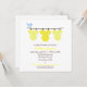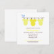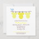 Roupas bonitas de bebê penduradas numa linha de roupa neste convite à criança.