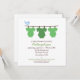 Roupas bonitas de bebê penduradas numa linha de roupa neste convite à criança.