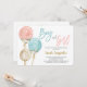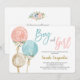 Convite para chá de fraldas de Menina, balões florais azuis e cor-de-rosa