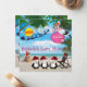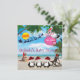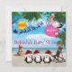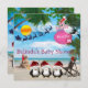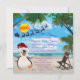 Feriados de verão na praia durante o Natal com pinguins dançando sob palmeiras para personalizar para uma menina ou um menino.