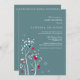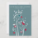Tal e Red Winter Snow Invitation Exemplar Whimsical de aves rosas e cinzas com ornamentos de férias.