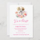 Um lindo cachorrinho e adorável convite para Chá de fraldas de flores rosa.
