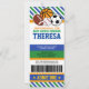 Celebre seu Chá de fraldas de Casais desportivos com nosso bilhete de chá de fraldas desportivo estrelado Convite. Design apresenta uma bola de futebol, beisebol, basquetebol e rugby/futebol num estilo de passagem de entrada de um estádio desportivo. Este design é perfeito para todos os Chás de fraldas desportivos, festas de Chá de fraldas desportivo, todos os casais de esporte estrela ou convites para jogos desportivos.