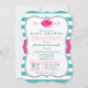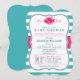 É uma garota! Um chá de fraldas de peixe azul-turquesa-rosado e azul-turquesa-Elegante convida-o para um padrão de listras horizontais com aparência formal vintage. Excelente para chás de fraldas temáticas sobre a vida no mar aquático no oceano náutico para raparigas. Convite de forma de colchete retrô.