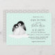 O encantador convite ao chá de fraldas moderno apresenta pinguins e uma camada de corações brancos delicados. Um padrão de corações brancos em uma cinza clara nas costas. Clique para personalizar ainda mais para alterar o estilo, o tamanho ou a cor da fonte.