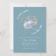 Cute and modern baby shower invitation card featuring illustration a cute pearl in a shell. Gender neutral design. The text says "a little pearl is on the way."