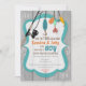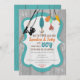 Celebrar um chá de fraldas com este adorável convite à pesca. Possui uma bela vara de pesca com lures coloridos e um fundo de textura de madeira.