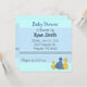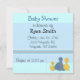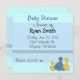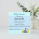 Um doce convite para chás de fraldas em azul e acentuado com dois pequenos patos amarelos e um pequeno dinossauro azul. Personalize com todas as suas informações conforme desejado.