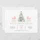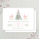 Adotar o espírito festivo com este convite de chá de fraldas rosa-claro, com duas carruagems cor-de-rosa e uma bela árvore de Natal rosa e verde.