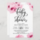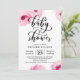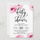 O convite ao chá de fraldas apresenta flores cor-de-água cor-de-rosa e uma fonte moderna de caligrafia.