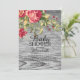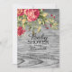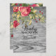 Rosas Rustic Cottage Chic convites para chuveiros de bebês em um fundo de madeira de cinza. Sacudir as nossas flores florais contemporâneas convidam-nos a ver uma espantosa correspondência para um toque especial extra. Disponível em nosso compro em uma variedade de combinações florais de na moda em uma variedade de cores para uma menina, um bebê ou um chá de fraldas neutro em relação ao gênero.