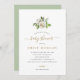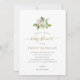 Barato de convites para chuveiros de bebês com impressão personalizada, com um arranjo floral simples pintado, com sotaques de folha de ouro brancos, verdes e falsos. Personalize o modelo com os detalhes do evento ou use as ferramentas de design para personalizar o texto, escolha qualquer cor de fundo e edite as fontes para criar seu design de convite exclusivo para chás de fraldas de menina. O verso apresenta um fundo verde bonito ou usa o espaço para adicionar texto ou fotos, se necessário. Este lindo design floral neutro é perfeito para qualquer estação.