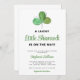 Este Convite para Chás de fraldas de na moda é decorado com uma pedra-d-água verde em shamrock e tipografia de scripts verdes. Perfeito para uma Rua. Dia de Patrick ou chá de fraldas de março. Original Watercolor © Michele Davies.