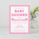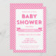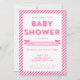 Convite para Chás de fraldas moderno com faixas cor-de-rosa; excelente para um chá de fraldas feminino. Personalize-o com seus detalhes substituindo o texto do marcador de posição. Para obter mais opções, clique no botão "Personalizar". *Observe que a Marca d'água do Zazzle que aparece na visualização de zoom não aparecerá no produto impresso final. © Rosewood e Citrus