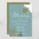 O Chá de fraldas De Tartarugas Do Mar Do Tema Oceânico Convide. Tartaruga-do-mar cega cavalgando as ondas. Parte do Conjunto de Papelaria de Chá de fraldas Oceano.
