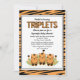 Três trigêmeos de tigre giros e um padrão de tigre para o seu chá de fraldas de tripletas fabuloso.