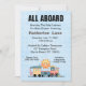 O Convite ao Chá de fraldas de Trem Blue Stork tem um design divertido, um trem colorido e as palavras All Aboard. Personalize com os detalhes do seu partido.