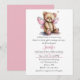 Adorável convite de chá de menina, com belos gráficos de um doce ursinho, com asas azuis e rosa, contra um fundo branco. Personalize o texto personalizado para o seu próximo evento.