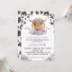 Nosso convite para Chás de fraldas de Vaca é a maneira perfeita de convidar amigos e familiares para sua festa. O design apresenta o tema da fazenda, com bastante espaço para todos os detalhes importantes, como a data, a hora e a localização da festa. Perfeito para qualquer idade, gênero e tema do partido, é certo que impressiona seus hóspedes e os entusiasma pela celebração.