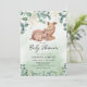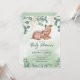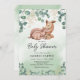 Convites de chuveiro de bebês de animais neutros do ponto de vista do gênero, com uma linda mãe de aquarela e veados de bebês, eucalipto verde, florais de ouro e um elegante modelo de chá de fraldas que é fácil de personalizar.