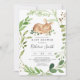 Convide seu convidado com nossos elegantes e modernos chás de fraldas de veados para bebês, os nossos convites para veados para bebês, apresentam um eucalipto gigante verde e animais safari aquosos. Personalize com seus detalhes de chá de fraldas em layout simples e fonte elegante de estilo manuscrito.
