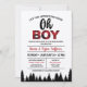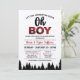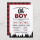 Ah, garoto! Este convite impresso de xadrez de frente e verso é perfeito para um chá de fraldas de co-ed celebrar a chegada de um menino. Inclui padrão de verificação de búfalos vermelho e preto e silhueta de árvore. Ideal para uma festa no outono ou no inverno, um lenhador, uma aventura ou um tema ao ar livre ou uma cabana de vestimenta flanela.