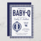 Comemore os futuros pais com o convite para chás baby-q apresentando um histórico clássico de gingham de marinho.