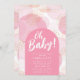 Design de bebê moderno com bolinhas cor-de-água cor-de-rosa com um arco cor-de-rosa a mostrar as informações da sua festa. Visite o nosso compro para ver toda a nossa coleção do Oh Baby