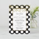 Preto e branco, bolinhas, confete com brilho de ouro, convite para chá de fraldas para uma futura mãe.