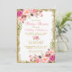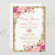 Cartão de Convite para Chás de fraldas Floral e Dourado Brilhante Cor-de-Água Rosa - Script Rosa