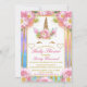 Convite para Chás de fraldas Dourados Rosa Unicorn