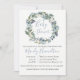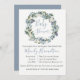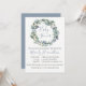Bonito camada floral de aquarela em tons de tendências de folhagem azul e botânica empoeirada com revestimento de cor azul empoeirado sólido, convite ao chá de fraldas. Personalize o estilo, a cor e o tamanho da fonte do texto. A cor de fundo também pode ser personalizada.