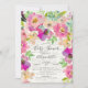Flores bonito, cor-de-rosa e roxas, sobre fundo branco rústico com um fundo de padrão floral coordenado.