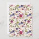 Flores bonito azuis e de ameixa, colocadas sobre um fundo de madeira rústica com um fundo de padrão floral coordenado.