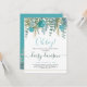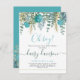 Menino "oh Boy" azul aquarela azul chá de fraldas floral boho convite com escrita desenhada por rosas azuis turquesa e folhagem de eucalipto.