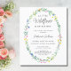 Convide a família e amigos para o chá de fraldas da sua menina com este bonito convite para flores silvestres. É decorada com uma estrutura oval de flores desenhadas à mão, verde e tipografia na moda. Facilmente personalizável. Use a Ferramenta Design para alterar o tamanho, o estilo ou a cor do texto. À medida que criamos a nossa trabalho de arte, não encontraremos esta imagem exata de outros designers. Desenho de Mão Original © Michele Davies.