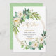 Este belo convite para chás de fraldas apresenta uma bela aquarela verde, flores brancas e uma coroa dourada. Tão elegante e bonito! Itens de partes correspondentes também estão disponíveis. © Mini Moi Impressões