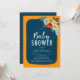 Chá de fraldas com flores e folhas contra fundo cor de laranja e azul, com um efeito ligeiramente angustiante, perfeito para um evento de outono. O convite tem um padrão de bolinhas laranja contra fundo azul com um efeito ligeiramente angustiante para um olhar rústico sobre o verso. Personalize este convite com seus detalhes substituindo o texto do marcador de posição. Para obter mais opções, como alterar a fonte, o tamanho/cor do texto, o espaçamento entre letras ou para contrair ou expandir o texto curvo, clique no botão "Personalizar". *Observe que a Marca d'água do Zazzle que aparece na visualização de zoom NÃO aparecerá no produto impresso final. © Rosewood e Citrus