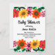 Folheto de flores brilhantes e divertidas neste convite para chás de fraldas moderno.