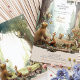 Entra numa floresta encantadora com esse belo convite de chá de fraldas de floresta ilustrado. A design apresenta uma cena serena de floresta numa paleta de verdes macios, castanhos quentes, laranjas suaves e azuis mutados, criando uma atmosfera pacífica que convida vocês a celebrarem uma nova aventura. As ilustrações incluem uma variedade de criaturas florestais, como uma coruja sábia empoleirada em um galho de árvores, um urso curioso interagindo com uma borboleta flautista, e outros amigos da floresta, como uma raposa, veado, esquilo, guaxinim e ouriço reunidos em torno de uma clareira florestal. O delicado equilíbrio de cor e detalhes faz disso o convite perfeito para dar boas vindas a uma nova vida no mundo com um toque de magia da natureza.